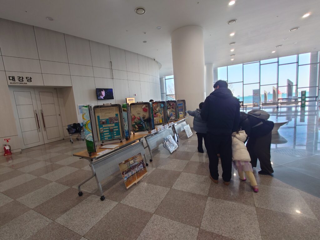 また、ワークショップ翌日にはトランク・ミュージアム®対馬版の展示を同会場で実施し、博物館を訪れた多くの方々にご覧いただき、対馬の海ごみ問題について関心を持っていただく事ができました。