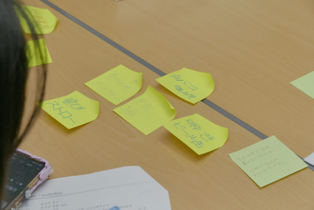 午後からは、日韓混合グループによるディスカッションとアートワークショップを実施。言葉や文化の違いを超えながら、海ごみ問題について活発な意見交換が行われ、非常に有意義な時間となったようです。